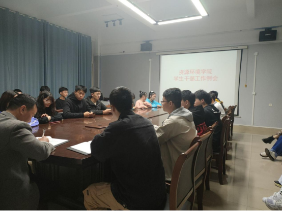 10月18日晚,kaiyun开云官方学生干部工作例会在厚德楼709召开。学生思政教育科副科长肖国光出席会议,学生会各部门部长、副部长、2021级新生班班长参加会议,会议由执行主席张明主持。