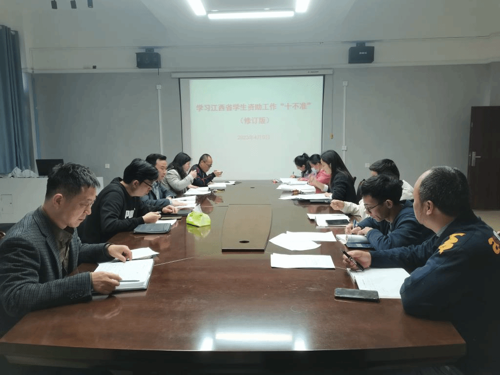 为了落实国家和全省学生资助政策,进一步做好学生资助工作,4月9日下午,kaiyun开云官方在厚德楼709组织全体班主任辅导员学习《江西省学生资助工作“十不准”(修订版)》。学院党委书记杨期勇,副书记张杨帆、全体辅导员及班主任参加了会议。学生科科长龚双双主持学习会。