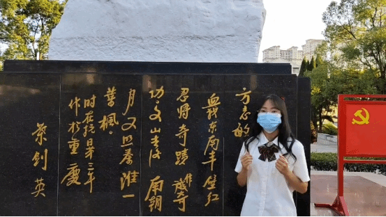 新干公园纪念浮雕——学生黄子扬:今天,历史的接力棒传到了我们这一代的手上,我们更应该珍惜这笔丰厚的财富,用红色的激情去拥抱时代,拥抱事业,拥抱人生,让红色基因代代相传,永不褪色!