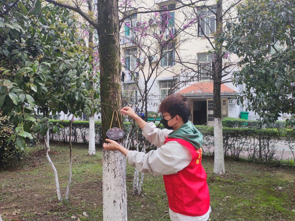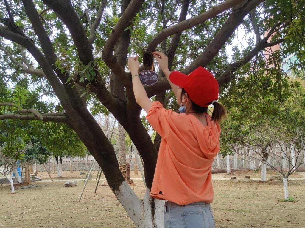 在这次活动中,志愿者们细心地为校园的植物挂上树牌,使原本明媚的花朵,质朴的树木,有机会为自己发声,不禁惹得路过的同学们对原本并未过多留意的它们驻足。志愿者们在为植物增添光彩的同时还不忘捡拾乱扔的垃圾,他们为美化校园所做的一切,不仅给书卷地留下该有的纯洁,而且有益于共建和谐校园。
