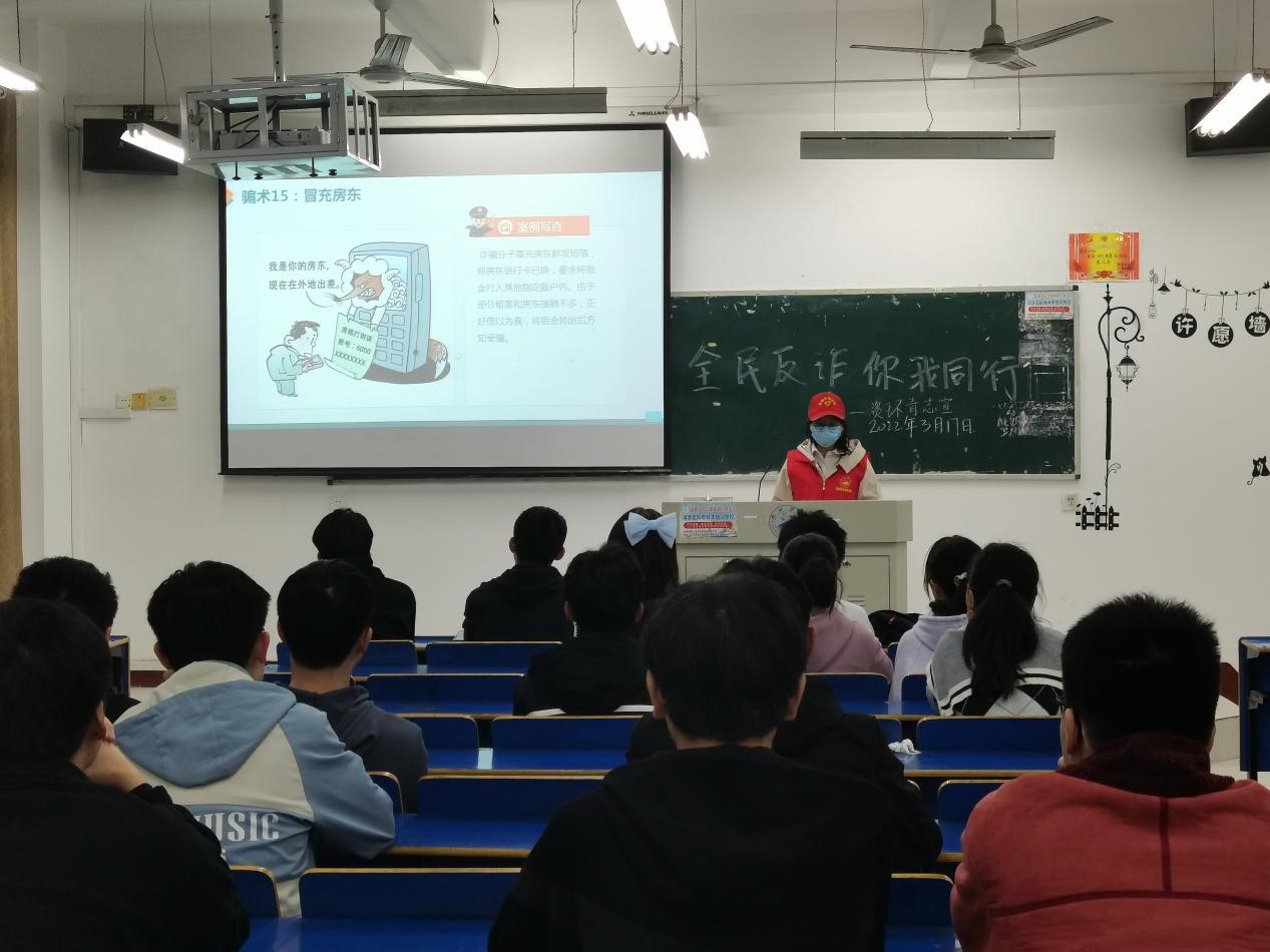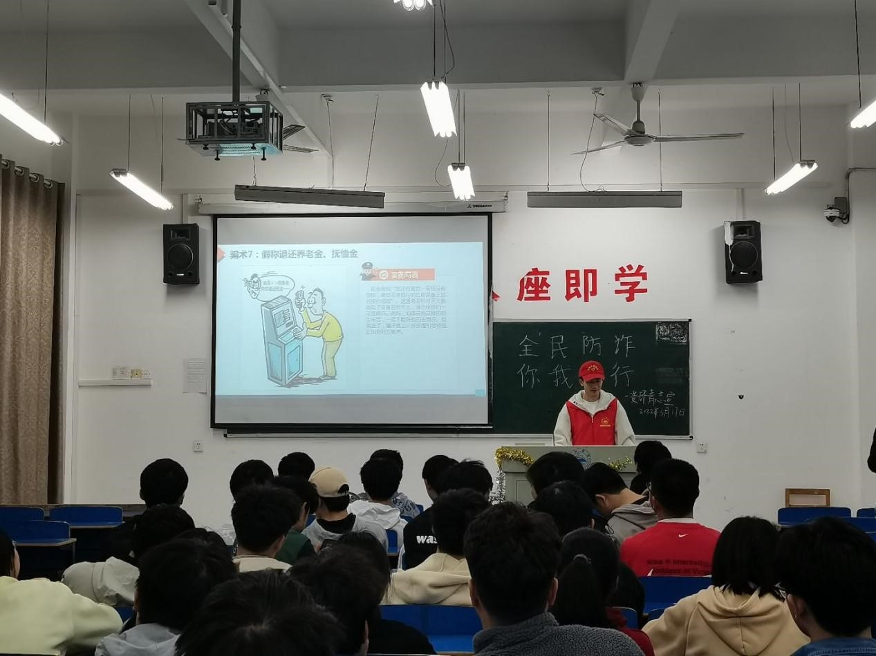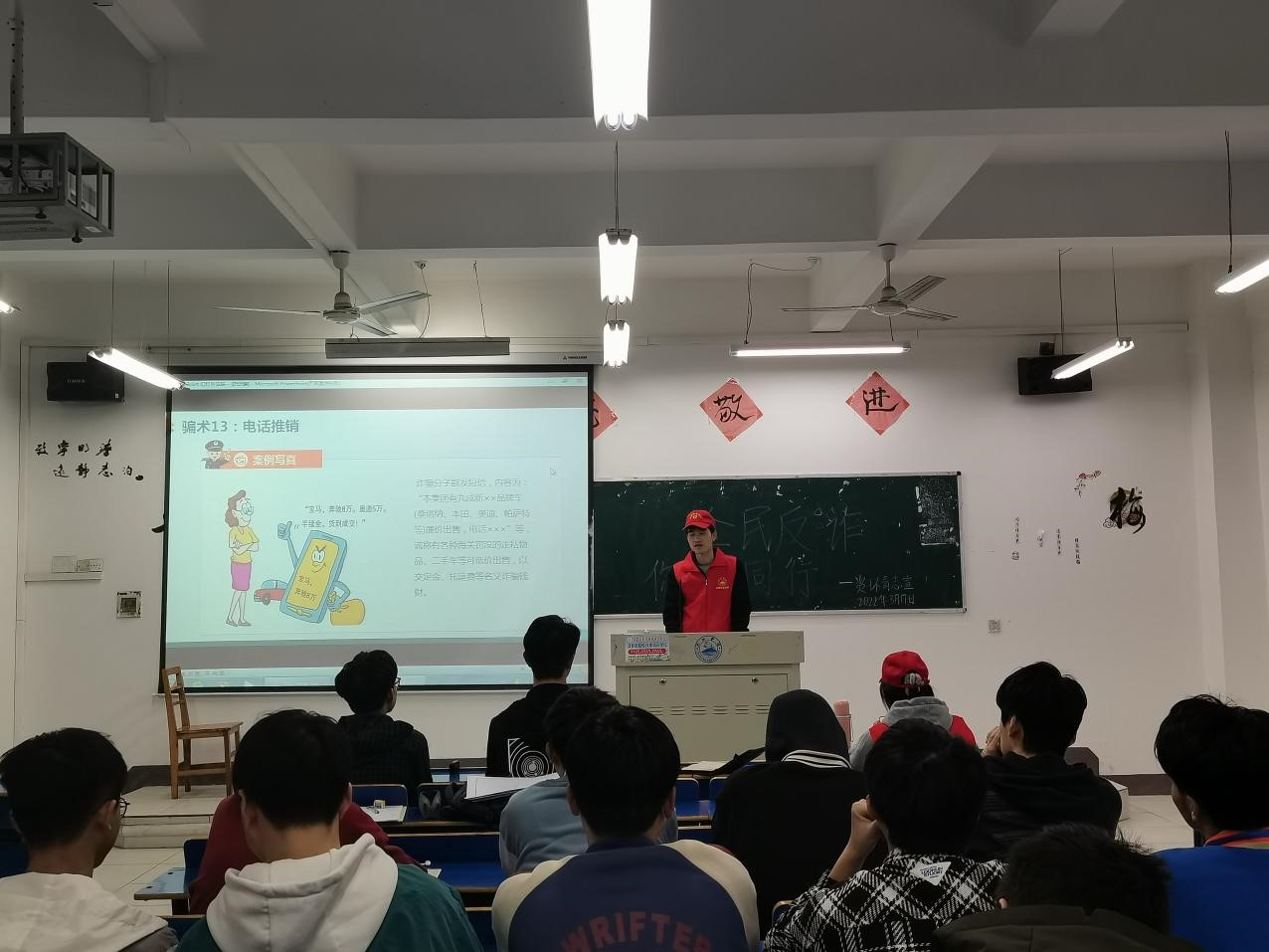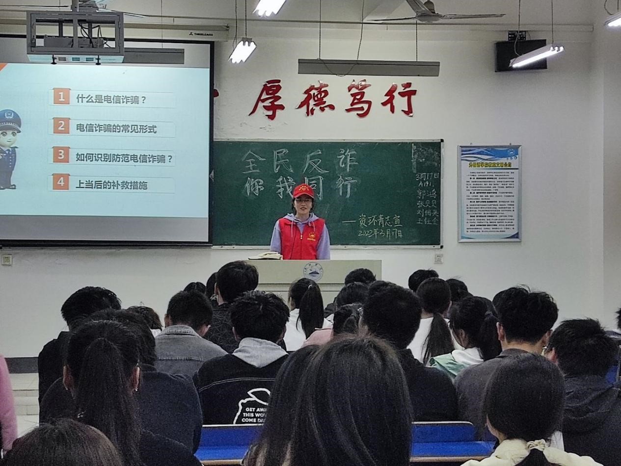 为提高同学们对电信诈骗手法的识别和防范能力,进一步加大校园防诈骗宣传力度、普及反诈知识、增强防范意识、营造平安和谐的校园环境,2022年3月17日,kaiyun开云官方组织青年志愿者服务队开展以“防范诈骗,人人参与”为主题的防范诈骗宣传活动。此次活动由青年志愿者服务队成员组织宣讲,全体资源环境学生参与,活动顺利举行。