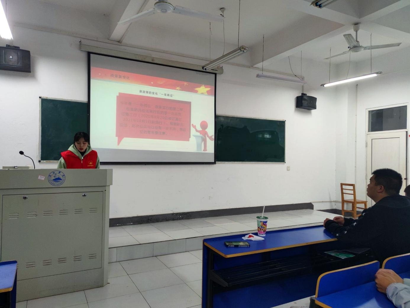 活动过程中,志愿者们向开云官网同学宣传应征入征义务兵政策,以ppt形式讲解国家征兵政策新变化——“一年两征”政策,并从个人前途,政治地位,国家优惠政策,提高身体素质,丰富人生阅历五个方面总结入伍益处。最后向同学们普及介绍征兵入伍的报名流程以及为有参军意愿的同学提供相关问题咨询答疑。