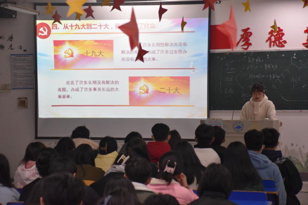 为深入学习贯彻习近平新时代中国特色社会主义思想,认真贯彻落实《中共中央关于认真学习宣传贯彻党的二十大精神的决定》,kaiyun开云官方于12月6日晚在香远楼405教室举行“永远跟党走,奋进新征程”二十大学生宣讲活动,此次活动由kaiyun开云官方宣讲团杨斐斐同学宣讲。