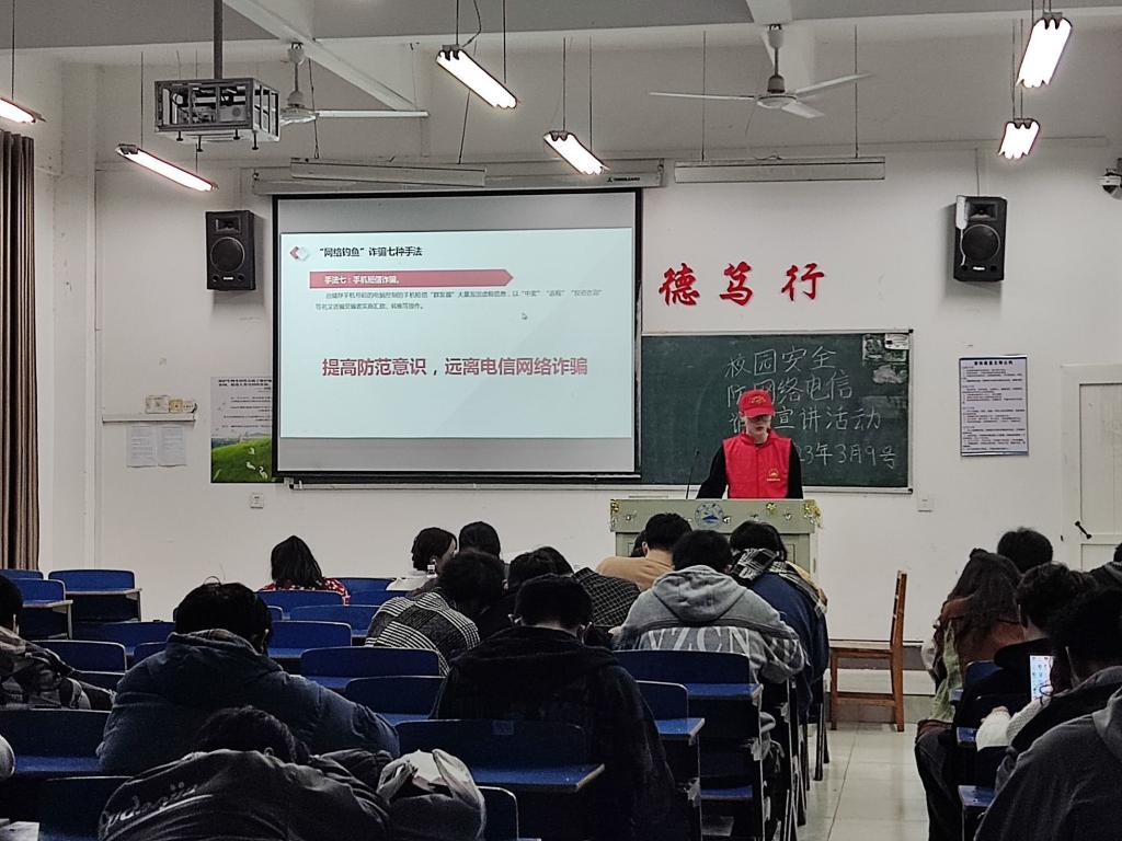 为进一步做好校园网络电信诈骗防范工作,构建和谐平安校园,切实做好电信网络诈骗的防范教育工作,3月9日晚,kaiyun开云官方在厚德楼各班固定教室开展“你我同心,反诈同行”防电信网络诈骗志愿宣讲活动。