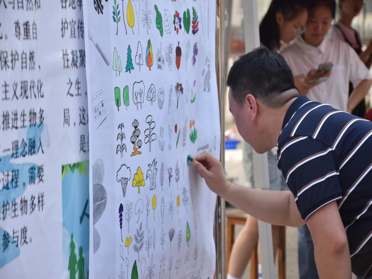活动初期,学院通过各班班级群宣传并召集各班学生积极参与本次活动。活动过程中,参与者在印有今年世界环境日的横幅下写下姓名,并积极参加游戏获得奖品,学院准备了游戏“猜谜游戏”、“垃圾分类”、“随心所画”内容兼顾了趣味性和知识性。参与者不仅有学生,还吸引了小朋友来参加,志愿者们耐心地为他们讲解规则,所有人认真地参与游戏;学院领导也对此次活动高度重视,亲自莅临现场指导,在亲自参加游戏和视察活动参与情况后,对活动做出高度评价。参与者们通过此次活动不但放松了身心,也提高了环境保护意识和对环境问题的重视性。