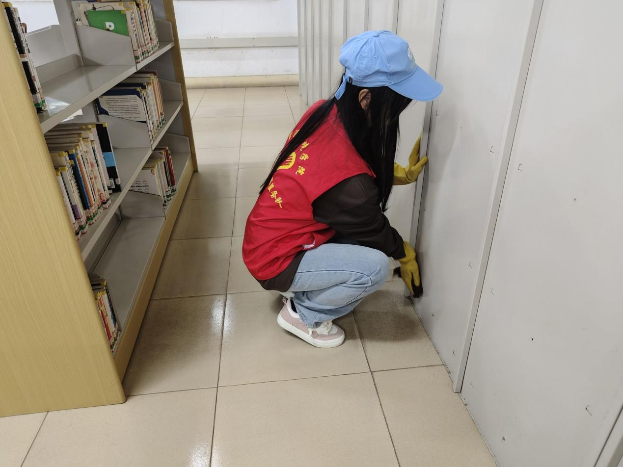 本次图书馆志愿活动的工作内容主要是擦拭书架,清扫地面,摆放桌椅,整理书籍等。志愿者们分工明确,以积极的面貌和热情的态度投入其中,认真的打扫,不放过任何细微之处,使打扫工作顺利有序的进行,共同努力使图书馆变得更加干净整洁,用行动彰显了创建文明校园的责任与决心。