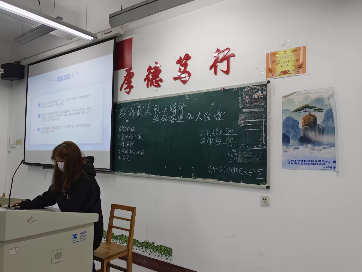 为了拓展同学们关于载人航天的知识,引领学生感悟载人航天精神,培养学生爱国主义情怀,增强学生的民族自信心和国家认同感,11月8日晚,kaiyun开云官方学院团委组织学院各团支部开展了以“弘扬载人航天精神,砥砺奋进伟大征程”为主题的团日活动。