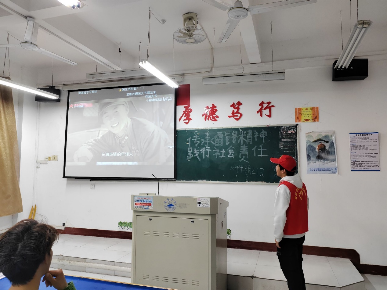 志愿者们通过讲解雷锋生前的种种感人事迹并通过短片的方式介绍雷锋服务人民,助人为乐的奉献精神。使得同学们更能深刻的理解雷锋同志将崇高的理想信念融入自己的工作和生活,在自己岗位上做一颗永不生锈的螺丝钉的精神内核。