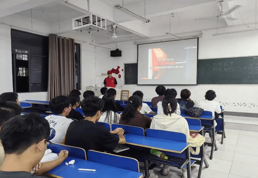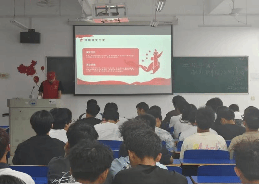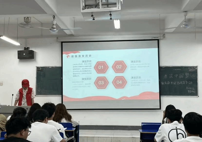 正值国庆来临,同学们怀着激动的心情迎接着新中国成立75周年的到来。此次宣讲活动志愿者们带领着同学们回顾了中华民族的历史长河,向同学们展示了祖国从弱到强,从贫穷到富饶的对比图,以及在各方面取得的巨大成就,让同学们全方位深入体会祖国的飞速发展与繁荣昌盛。