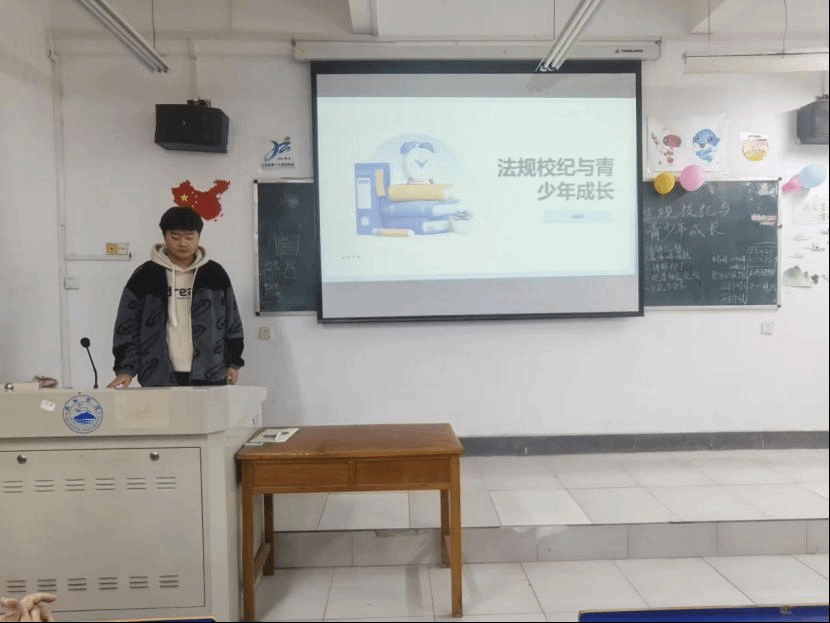在齐唱团歌结束过后,团日活动准时开始。各班团支书和组织委员组织各班开展“法规校纪筑心中,纪法青春伴同行”团日活动,主讲人围绕法规校纪的重要性和遵纪守法的实践路径让同学们增强了法律意识,认识到了遵纪守法的重要性,同时提高了自我保护力。
