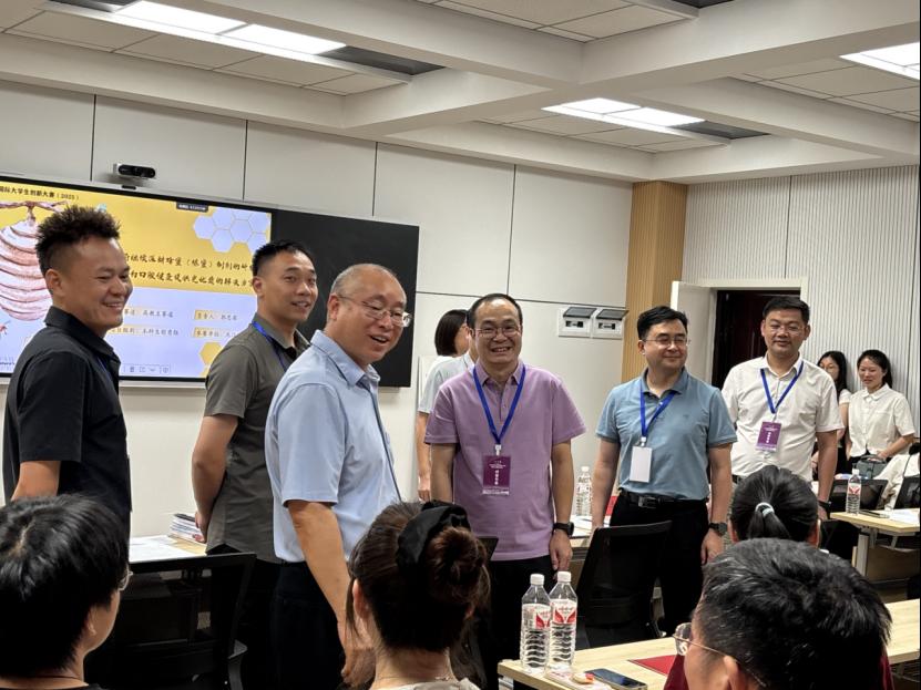大赛严格执行“1分钟项目视频展示+5分钟核心内容陈述+3分钟专家答辩”赛制。各团队通过清晰的逻辑阐述、详实的数据支撑,系统介绍项目技术内核与应用价值;答辩环节中,选手就技术可行性、市场竞争力等问题与评审专家深入交流,展现出扎实的专业基础与思辨能力。校领导现场巡视赛事进程,与专家评委、参赛学生亲切交流,肯定了师生的备赛成效与创新实践。赛后,专家团队为项目提供一对一指导,助力优化完善方案。