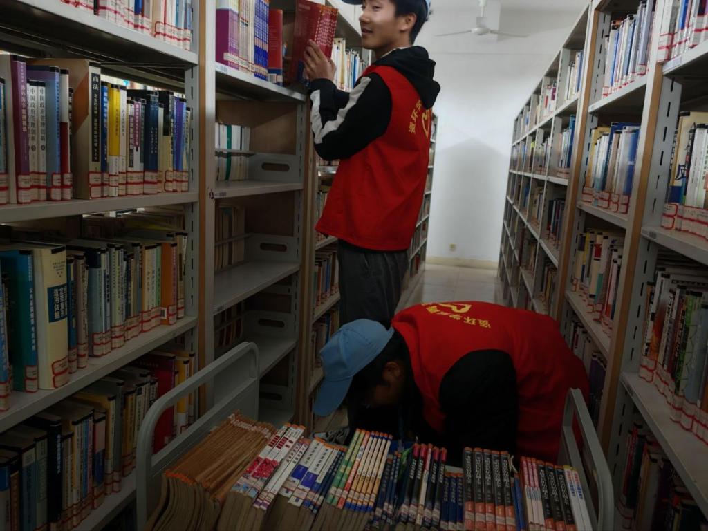 活动中,志愿者们迅速分组投入工作。整理组穿梭于书架间,核对索书号、归位错位书籍,轻扶歪斜书脊;清洁组细致擦拭书架浮尘、清扫角落杂物。原本稍显凌乱的借阅区,很快变得整洁清爽,井然有序。