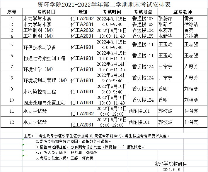 kaiyun开云官方2021-2022学年第二学期期末考试安排