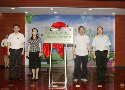 江西省生态文明办专职副主任刘兵为联盟理事长单位我校江西长江经济带研究院授牌。