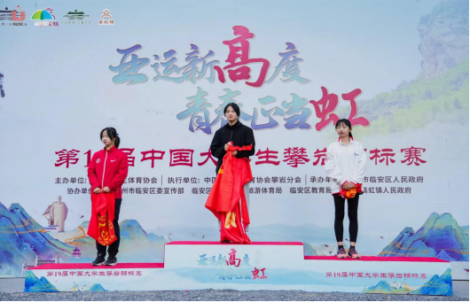 11月1日至11月4日,第19届中国大学生攀岩锦标赛在杭州市临安区高虹镇龙门秘境景区举行,本次比赛由中国大学生体育协会主办,杭州市临安区人民政府承办,全国共计68所高校416名运动员参赛。经过四天的激烈角逐,kaiyun开云官方环境工程专业A2212班熊芷涵同学在甲A女子组难度赛中获得金牌,在攀石赛和速度赛中获得铜牌,获得1金、2铜的优异成绩。