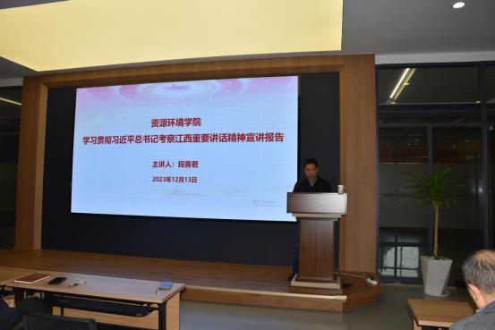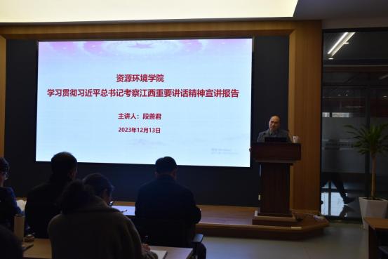 为深入学习贯彻落实习近平总书记考察江西重要讲话精神,12月13日下午,在校大学科技园一楼会议室,资环学院邀请马克思主义学院段善君博士为师生作题为«深入学习贯彻习近平总书记考察江西重要讲话精神»专题辅导报告。学院党委书记杨期勇主持会议并讲话,学院全体教职工及学生代表参加。