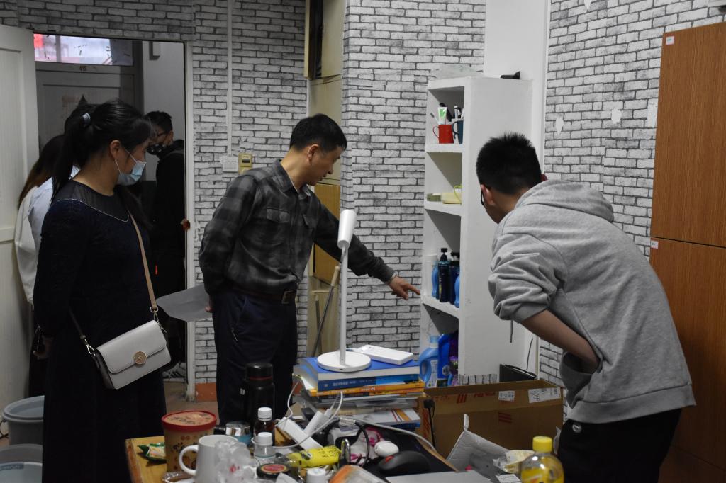 督查检查过程中,杨期勇书记听取了各班班主任汇报的春季开学以来疫情防控工作及安全教育工作的开展情况,并深入学生宿舍23栋各寝室进行现场督查检查。他强调,学生宿舍是疫情防控的一个重要场所,通风、清洁、消毒工作时刻不能放松,疫苗接种“应接尽接”、核酸检测“应检尽检”,同时做好学生防控信息的统计工作。要严格执行疫情防控管理规定,持续抓好常态化疫情防控措施的落实。同时还重点排查了学生寝室安全隐患以及返校后的思想动态,学院领导及班主任老师与学生进行了亲切的交流,耐心分析学生在生活中以及学习上所遇到的难题,认真聆听并记录同学们对学院日常管理的想法和建议,并精心指导学生做好新学期的学习、生活规划。加强学生宿舍安全管理教育,引导学生养成良好的卫生习惯,全面确保学生宿舍的安全和整洁卫生。