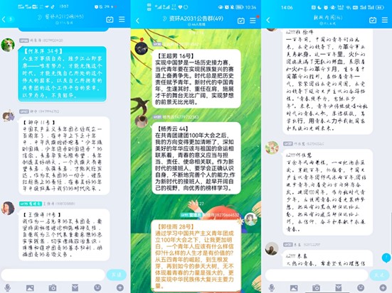 资环学院A2111班团支书戴奕婷:不忘初心,牢记使命。通过学习习近平总书记的讲话,我深刻认识到作为新时代的青年,应当弘扬五四精神,不惧困难,奋力前行!随着新时代经济的迅猛发展,祖国母亲日益的强大,我们更要燃点青春,立志报国,奉献社会,我们必须懂得奉献,奉献是青春的价值所在!