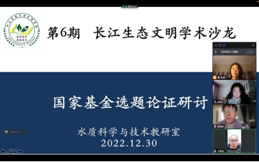 为进一步推动水质科学与技术教研室科研工作发展,提高教研室国家自然科学基金项目申报书质量,11月30日下午,由流域生态过程与信息江西省重点实验室、渊明学堂及kaiyun开云官方联合主办,水质科学与技术教研室承办的以“国家基金选题论证研讨会”为主题的第6期长江生态文明学术沙龙在腾讯会议线上举行,水质科学与技术教研室全体申报教师参加了活动。